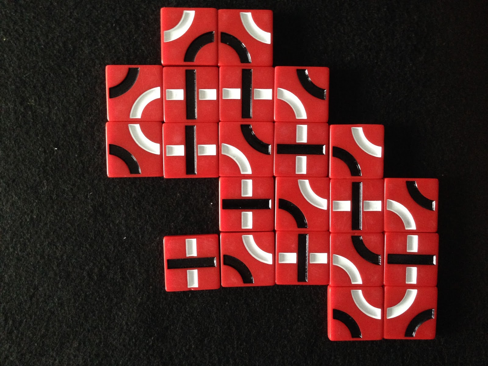 Y esto es todo... así de simple. Como veis es un juego en el que cada jugador tiene pocas opciones de colocar piezas ya que todas son iguales y cuentan con dos caras diferentes, por lo que desarrollar una estrategia es más buscando el despiste del otro que por méritos propios.